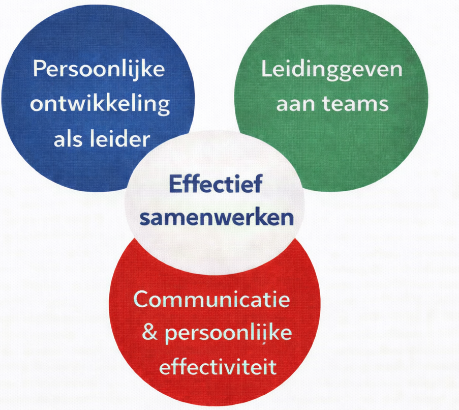 Daarom werken wij bij leiderschapsvraagstukken altijd vanuit samenhang. Inzicht, vaardigheden en samenwerking versterken elkaar. Wat wordt geleerd, wordt geoefend en toegepast, zodat het effect zichtbaar wordt in het dagelijks werk.